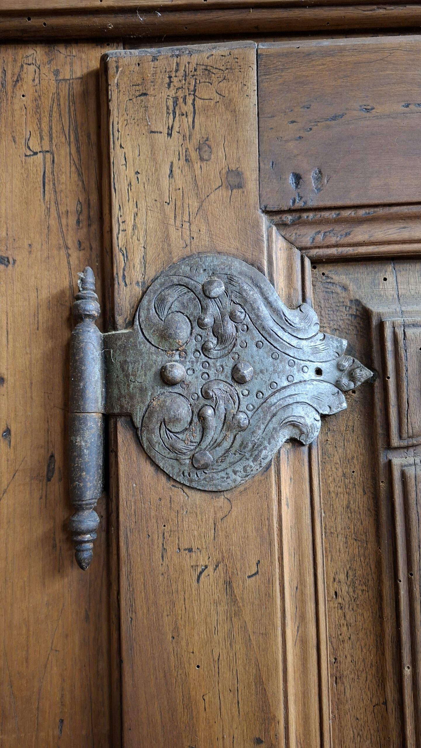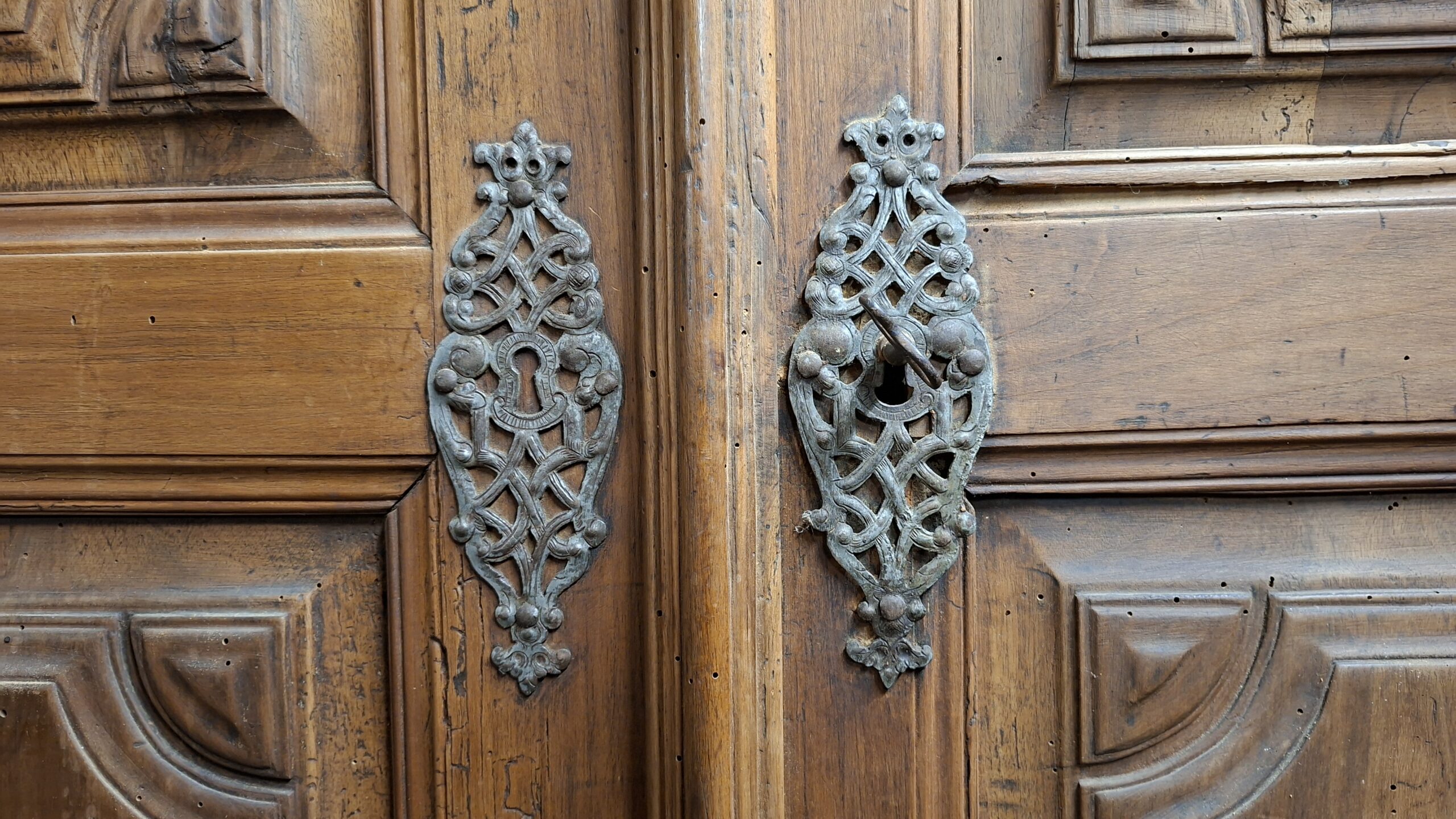 Armadio in noce con importante ferramenta esterna.