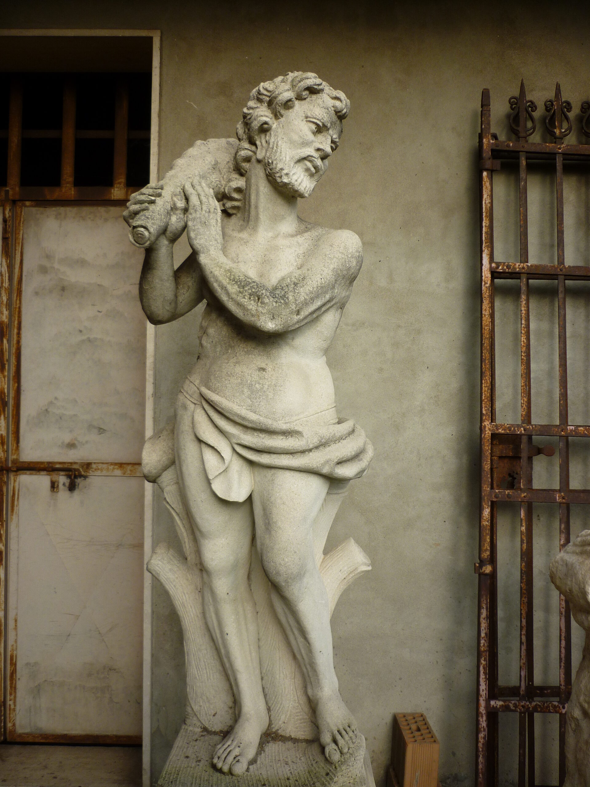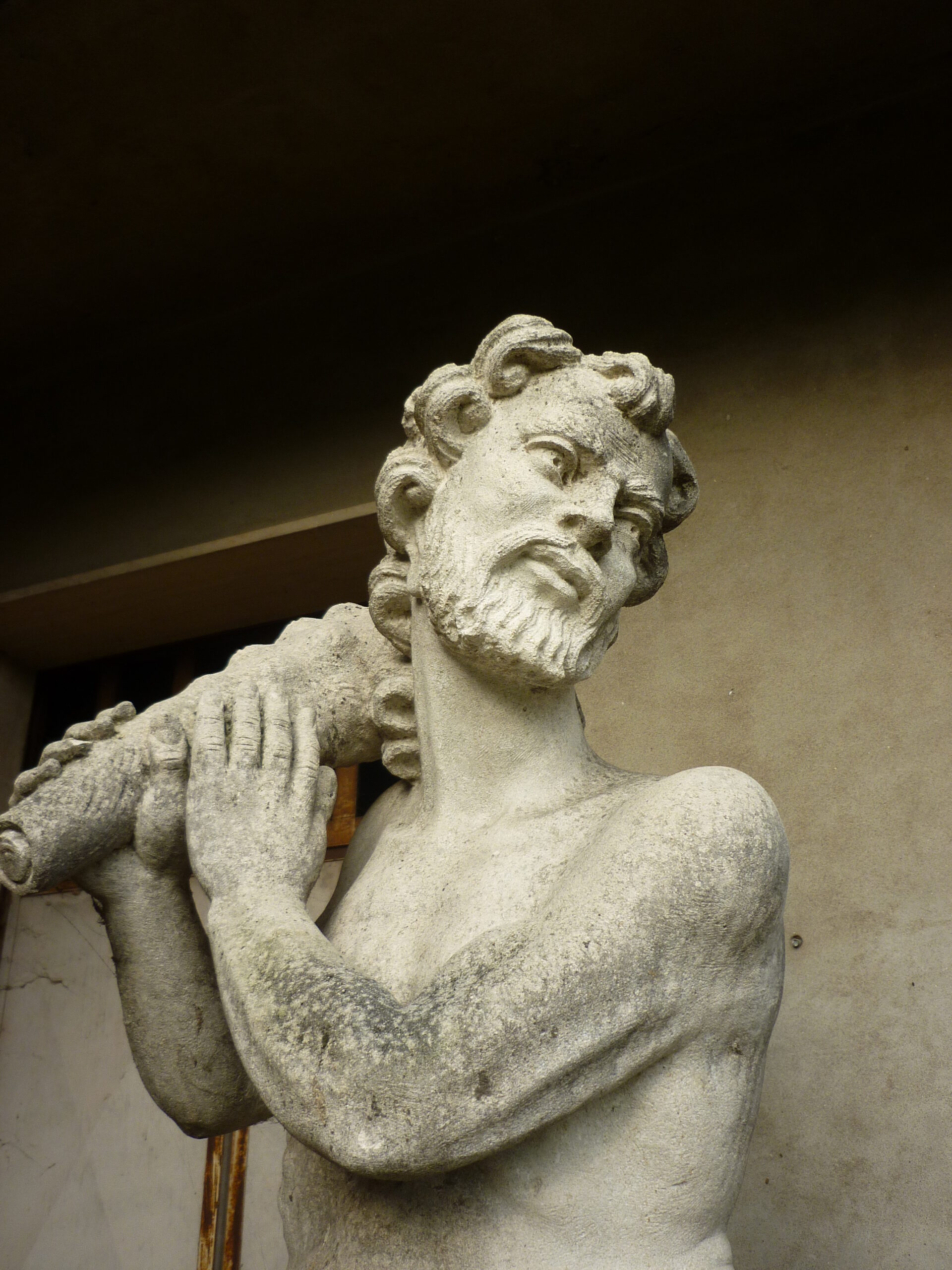 Coppia di statue simmetriche, in pietra di Vicenza, raffiguranti Ercole.