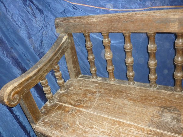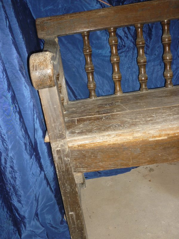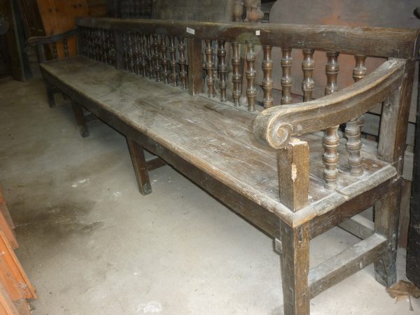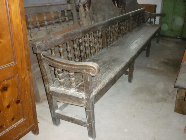 Interessante panca di notevole lunghezza ( 4 metri) con schienale a giorno a balaustra con colonnine tornite.