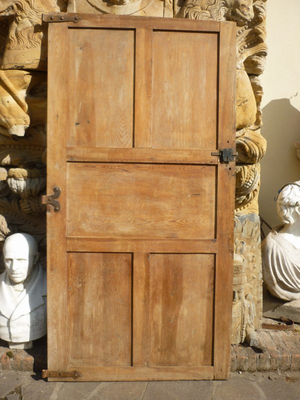Porta ad un'anta in pino, a tre bandelle originali, ferramenta originali.